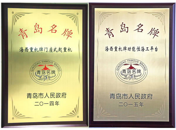 近年來,青島市大力推進(jìn)質(zhì)量強(qiáng)市戰(zhàn)略,深入實施品牌培育工程,涌現(xiàn)出一批市場競爭力強(qiáng)、知名度高、代表“青島制造”形象的品牌產(chǎn)品。我公司“海西重機(jī)牌功能性海工平臺”和“海西重機(jī)牌門座式起重機(jī)”產(chǎn)品作為省市重點培育對象,經(jīng)過前期申報、區(qū)(市)推薦、專家評審以及消費者投票、公示等評審程序,最終分別被評定為2014、2015年度青島名牌產(chǎn)品。