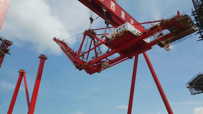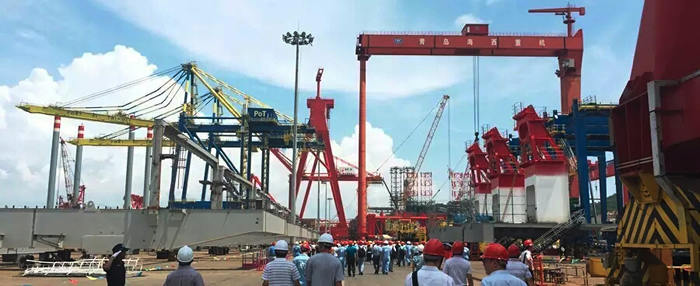 公司生產(chǎn)基地參觀同樣火爆:適逢總裝現(xiàn)場70T-60M岸邊集裝箱起重機(jī)項(xiàng)目整體吊裝, 1600T龍門吊平穩(wěn)吊起850噸的前后大梁、緩緩上升、精準(zhǔn)定位、穩(wěn)穩(wěn)落于該岸橋的門框上,現(xiàn)場高效的安裝工藝,給了在場的400余嘉賓巨大的視覺沖擊,掌聲、贊美聲陣陣不斷。公司整體室內(nèi)噴涂的涂裝工藝、超大型設(shè)備整機(jī)滾裝運(yùn)輸?shù)能浻布?shí)力也讓參觀嘉賓耳目一新。