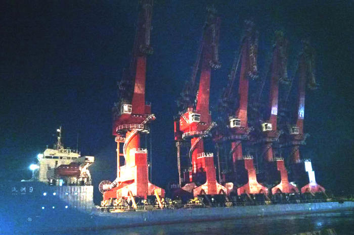 11月2日-3日,連云港3臺(tái)門機(jī)陸續(xù)上船并完成綁扎;