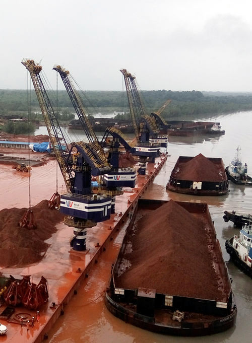 目前,韋立聯(lián)盟港口公司(WAP)滿負(fù)荷運(yùn)營,“海西重機(jī)”牌固定式起重機(jī)質(zhì)量可靠、裝船速度快,成功助力博凱內(nèi)港打破了港區(qū)泊位每個(gè)潮水位只能裝1條駁船的生產(chǎn)瓶頸,多次創(chuàng)造港區(qū)駁船轉(zhuǎn)運(yùn)新紀(jì)錄,為港區(qū)出礦量打下堅(jiān)實(shí)基礎(chǔ),大大提高了港區(qū)運(yùn)營能力。未來隨著該批固定式起重機(jī)的投產(chǎn),屆時(shí)14臺海西重機(jī)設(shè)備將為博凱內(nèi)港實(shí)現(xiàn)年3000萬噸裝卸目標(biāo)提供有力保證。