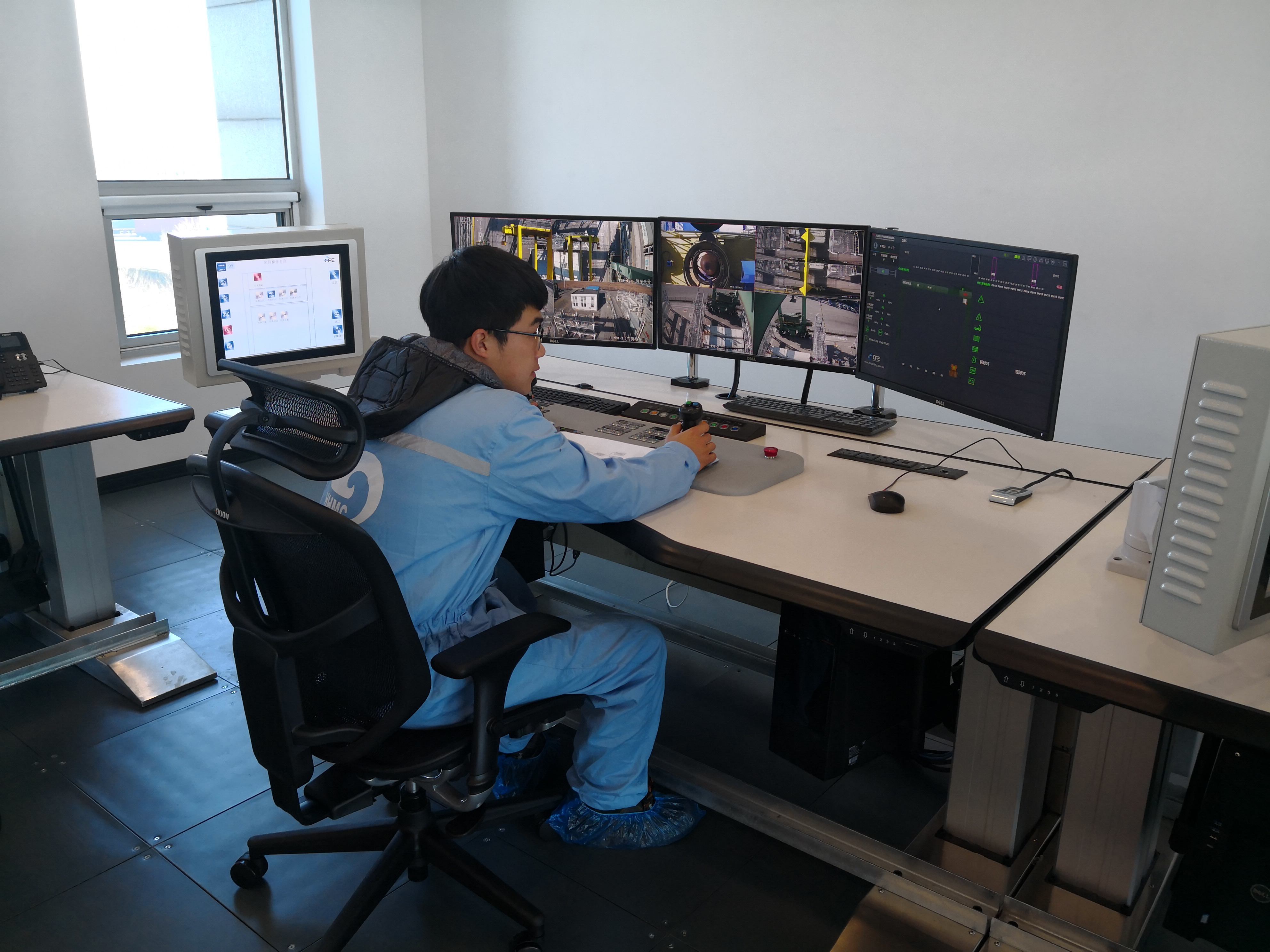 2019年的1月中旬,天津港太平洋碼頭空無一人,經(jīng)過自動化改造后的2臺場橋(RTG)正在有條不紊地作業(yè)。“操縱”這一切的司機,遠在中控室,而這2臺設(shè)備全部由一人控制。改造后的設(shè)備,操作更為舒適與安全,通過遠程操控,設(shè)備司機師傅可遠程操作多臺RTG進行生產(chǎn)作業(yè),改變了過去工作環(huán)境惡劣的狀況。