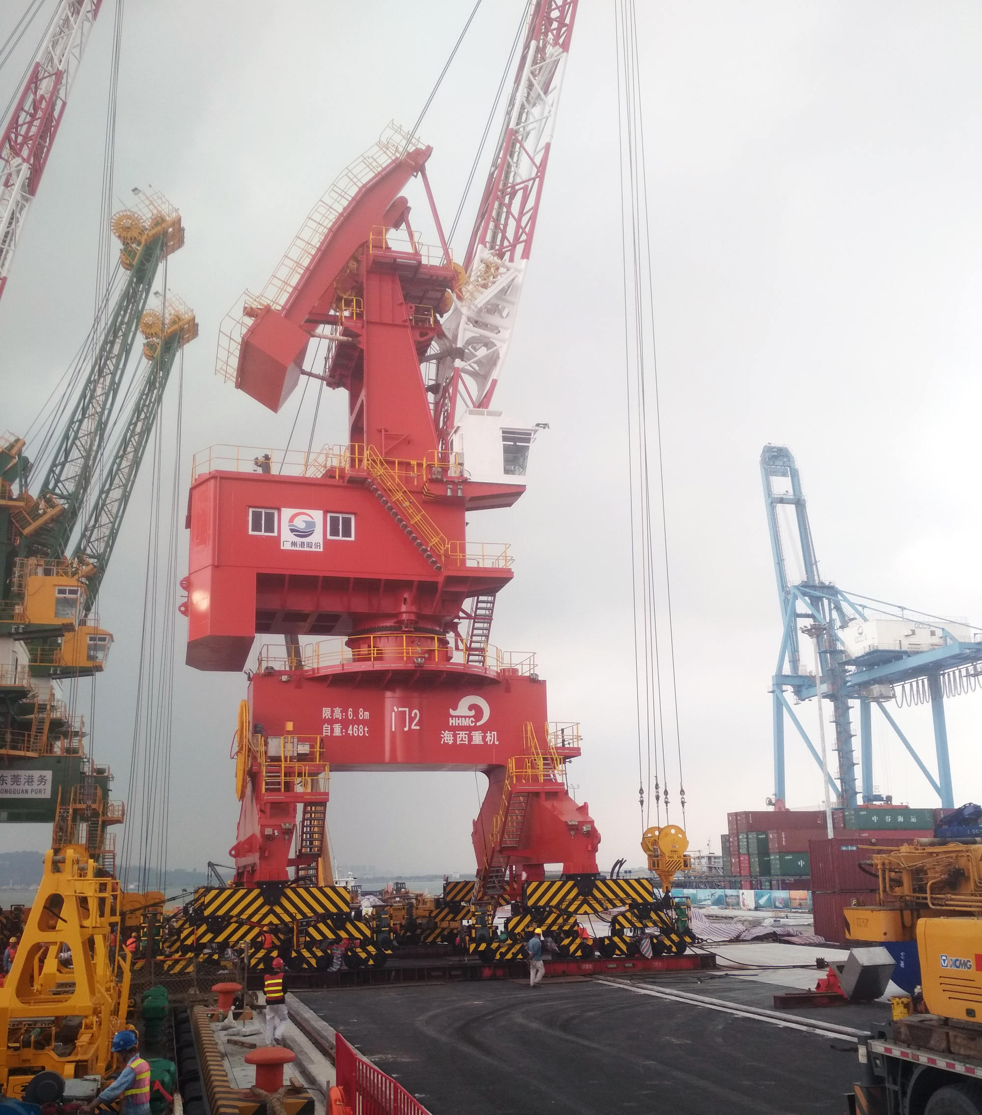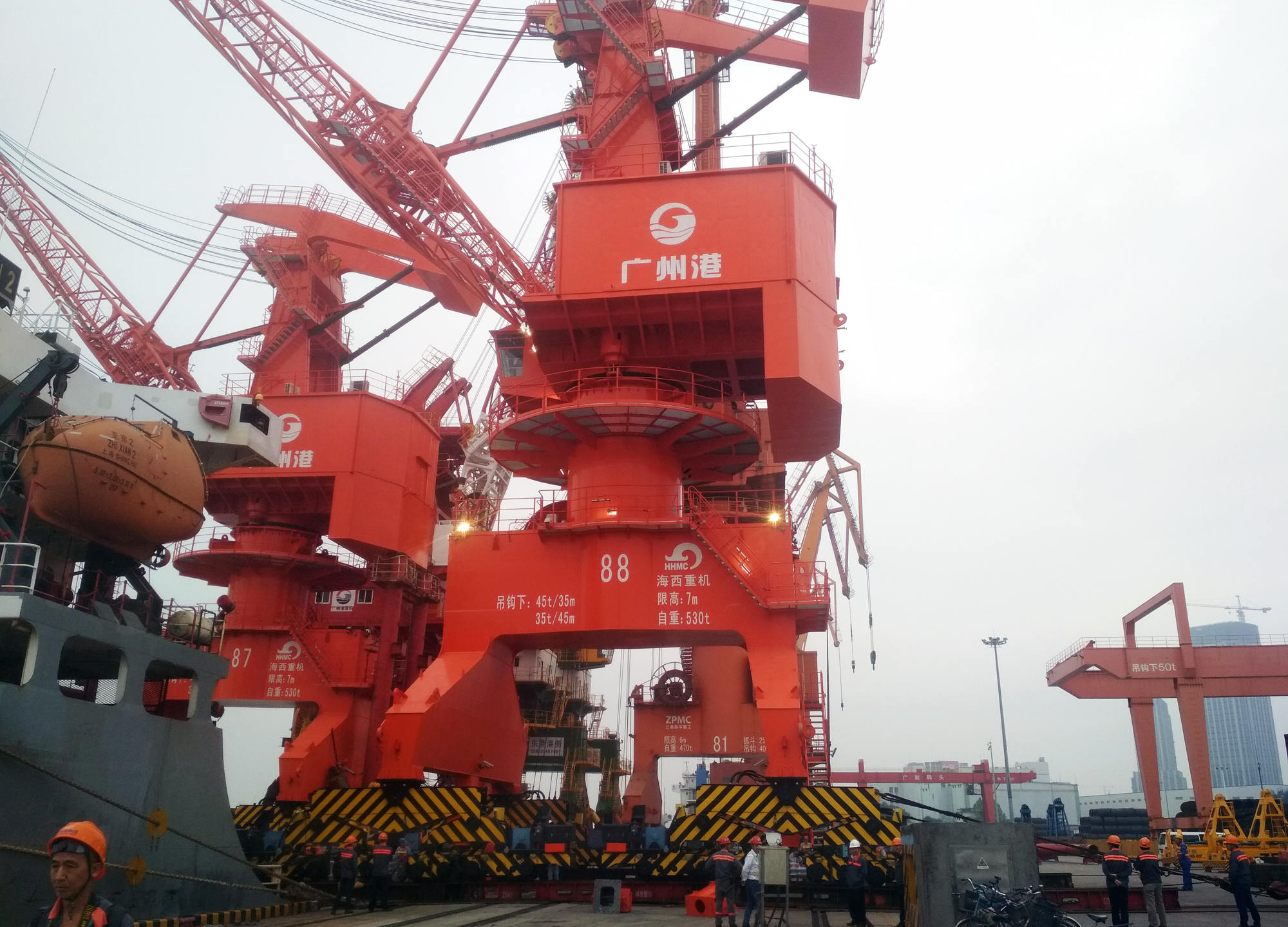 滿滿的一船門機(jī)。3月19日,我司分別為廣州港股份有限公司黃埔港務(wù)分公司、廣州港股份有限公司新沙港務(wù)有限公司、東莞市虎門港駁船碼頭有限公司制造的各2臺門機(jī)(共6臺)在海西重機(jī)的生產(chǎn)碼頭同船順利發(fā)運(yùn)。3月26日,運(yùn)輸船安全抵達(dá)黃埔港,一場卸船攻堅戰(zhàn)就此展開。