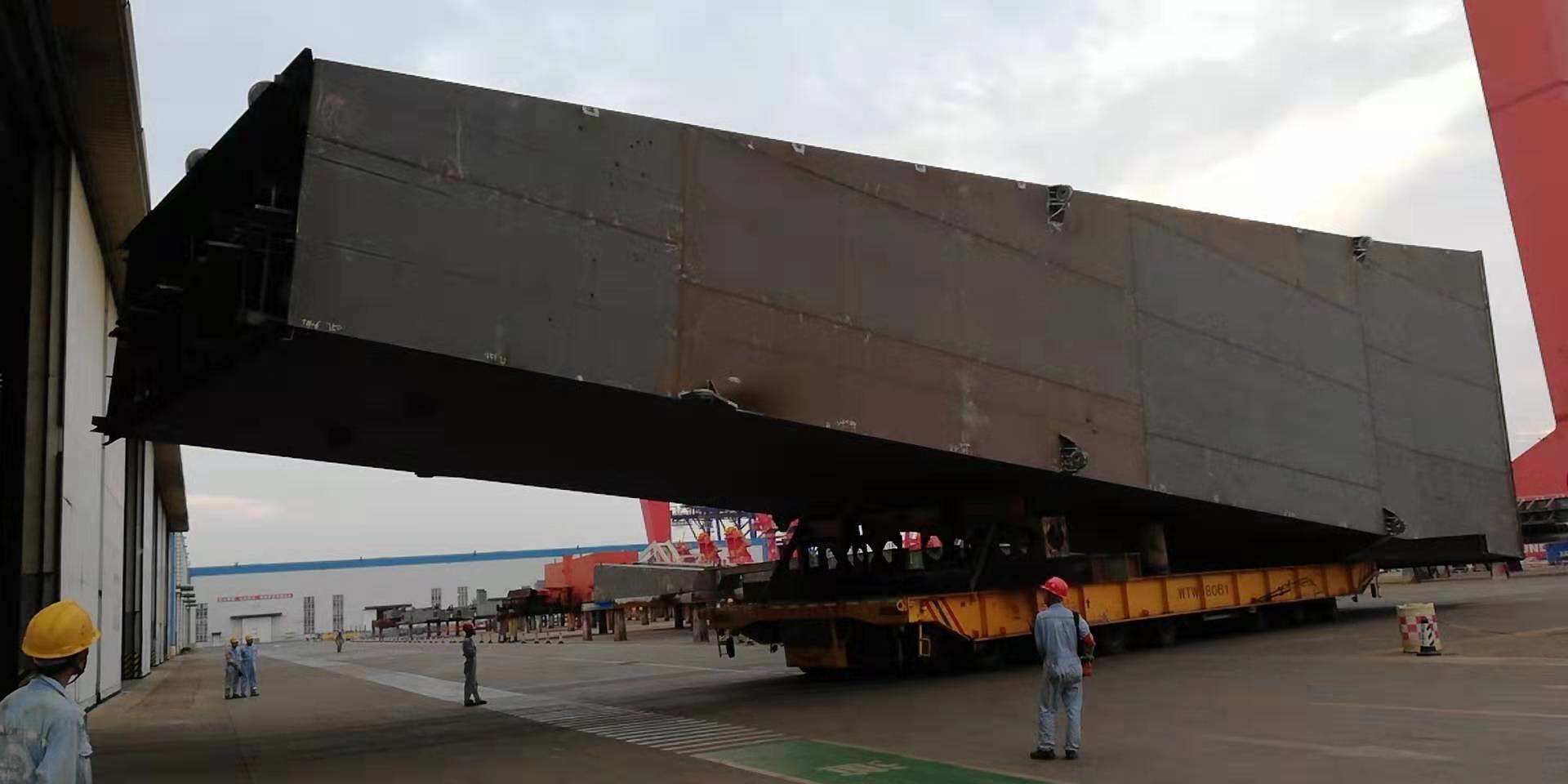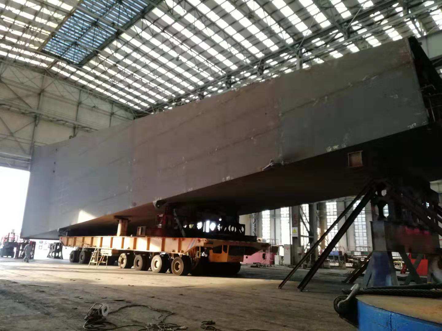 8月23日晚上19:30分,運載M30剛性腿整體分段的380T平板車,在操控人員的審慎操控下,緩緩駛出海西重機(jī)鋼構(gòu)制作車間大門,成功轉(zhuǎn)運出車間!這一幕看似平淡無奇的場景,凝結(jié)了多少員工的汗水和智慧,后面又有多少創(chuàng)新,唯有親身經(jīng)歷了這場“戰(zhàn)斗”的人才能真正體會。