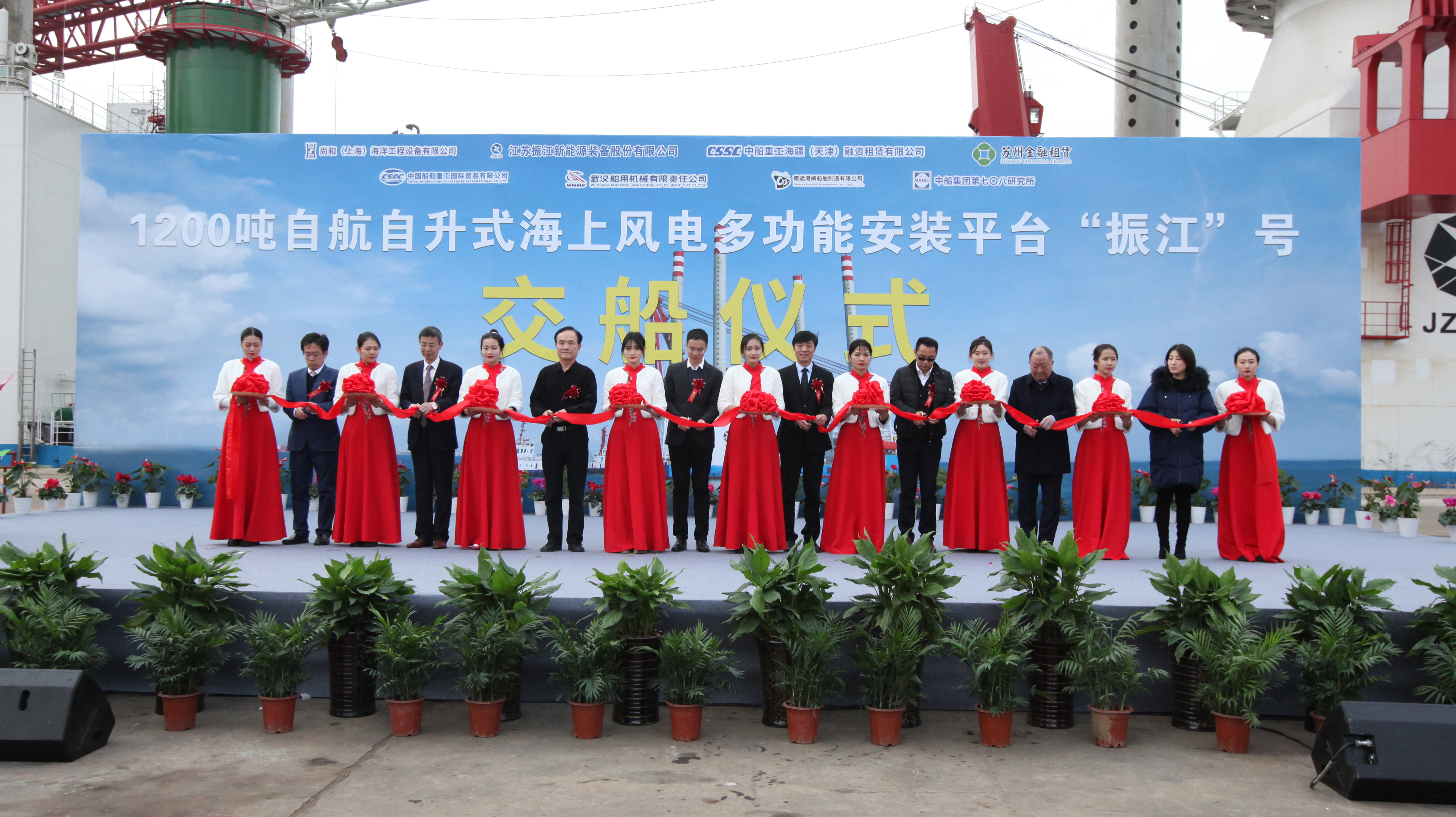 12月13日下午,國內(nèi)首座1200噸自航自升式風(fēng)電安裝平臺(tái)——“振江”號(hào)交付儀式在武漢船機(jī)海西重機(jī)隆重舉行。尚和(上海)海洋工程裝備有限公司、江蘇振江新能源裝備股份有限公司、中信銀行、中國船舶及海洋工程設(shè)計(jì)研究院、中國船級(jí)社等單位領(lǐng)導(dǎo)和項(xiàng)目相關(guān)人員共同見證了這一歷史性時(shí)刻。
