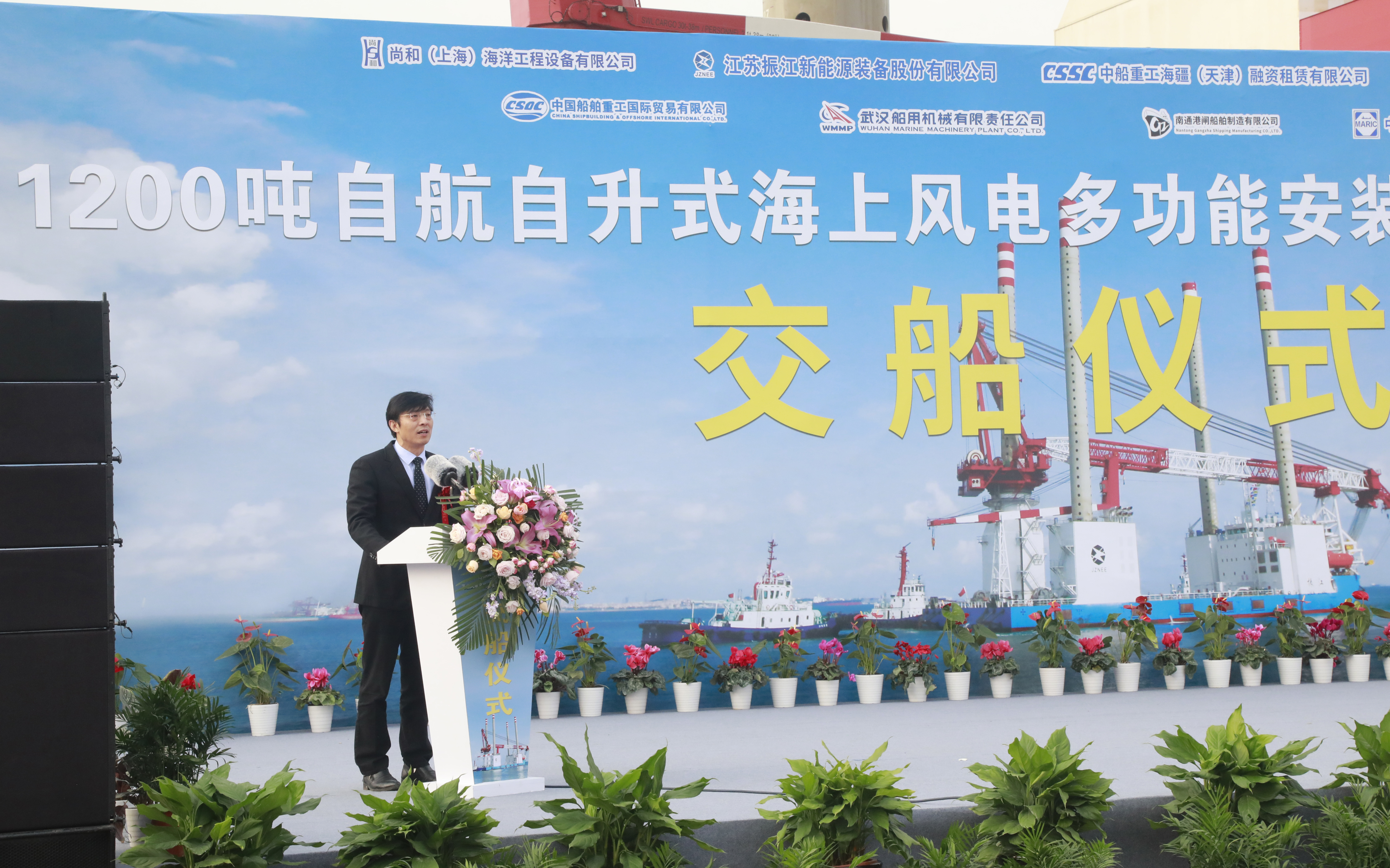 武漢船機(jī)黨委書記、董事長(zhǎng)馬聚勇代表公司在平臺(tái)交付儀式上致辭,對(duì)參加交船儀式的各位領(lǐng)導(dǎo)、同仁以及為該平臺(tái)生產(chǎn)制造和試驗(yàn)成功付出辛勤勞動(dòng)的所有監(jiān)造人員和工作人員表示由衷感謝。馬聚勇同志指出,“振江”號(hào)風(fēng)電安裝平臺(tái)是武漢船機(jī)連續(xù)交付多艘自升式輔助平臺(tái)后,再次作為總包方承擔(dān)的全部項(xiàng)目建造任務(wù)。項(xiàng)目合同簽訂后,公司上下高度重視,充分發(fā)揮設(shè)備集成和平臺(tái)總包能力,集中武漢本部和青島海西兩地優(yōu)勢(shì)資源,不斷加強(qiáng)生產(chǎn)組織管理,從源頭上保證了建造質(zhì)量和周期,較好地滿足了平臺(tái)建造進(jìn)展。自平臺(tái)開工建造到今天正式交船,中國船級(jí)社始終給予悉心指導(dǎo),各參建方發(fā)揮自身優(yōu)勢(shì),通力合作,突破多項(xiàng)技術(shù)難關(guān),為平臺(tái)順利交付和使用提供了強(qiáng)有力保障