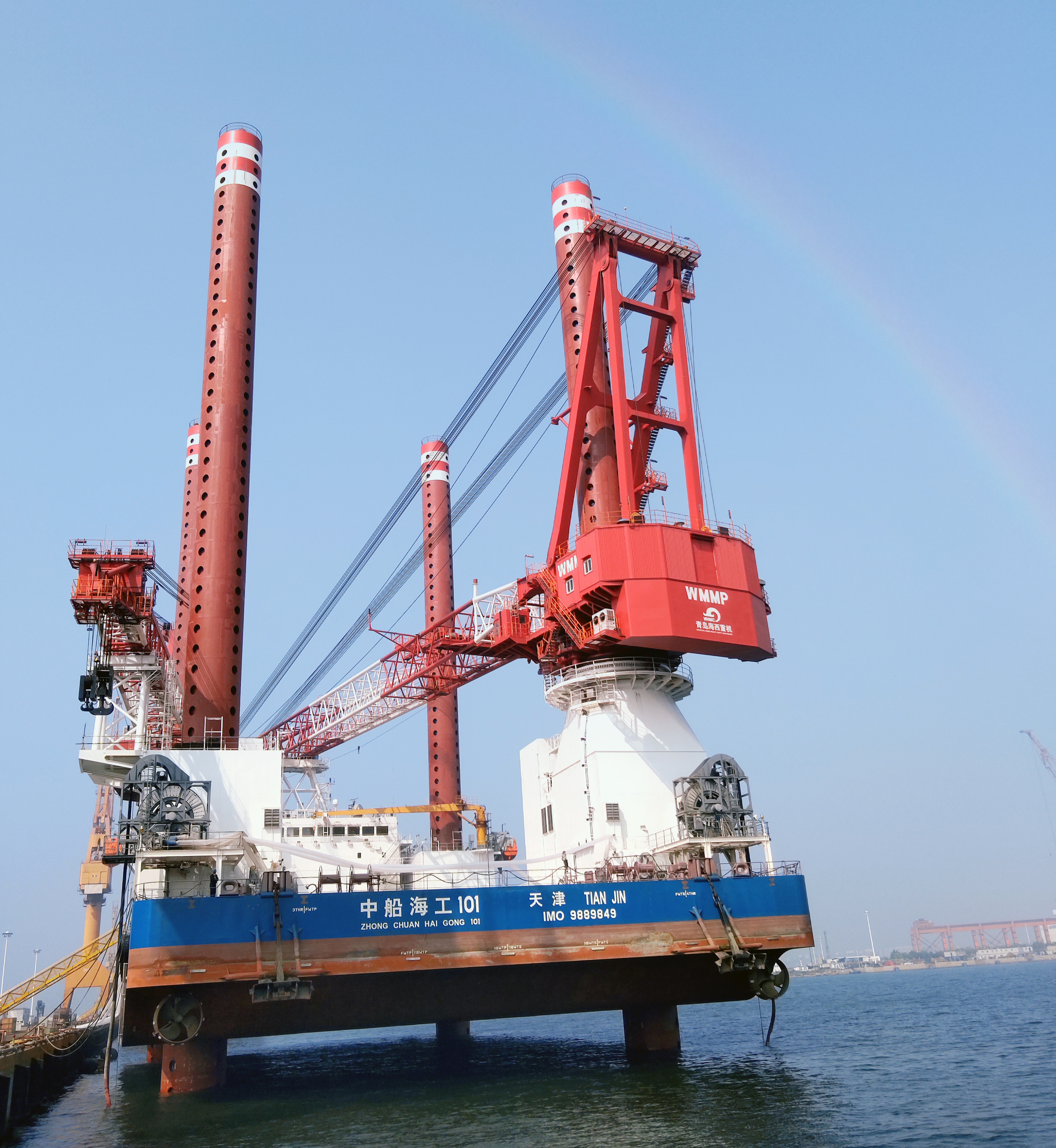 7月31日,大船集團山船重工為中船集團(天津)海上風電公司建造的自升式海上風電安裝平臺“中船海工101”順利交付。該平臺的關(guān)鍵設(shè)備350T1000T繞樁吊(以下簡稱H15項目)由海西重機負責制造、安裝、調(diào)試。