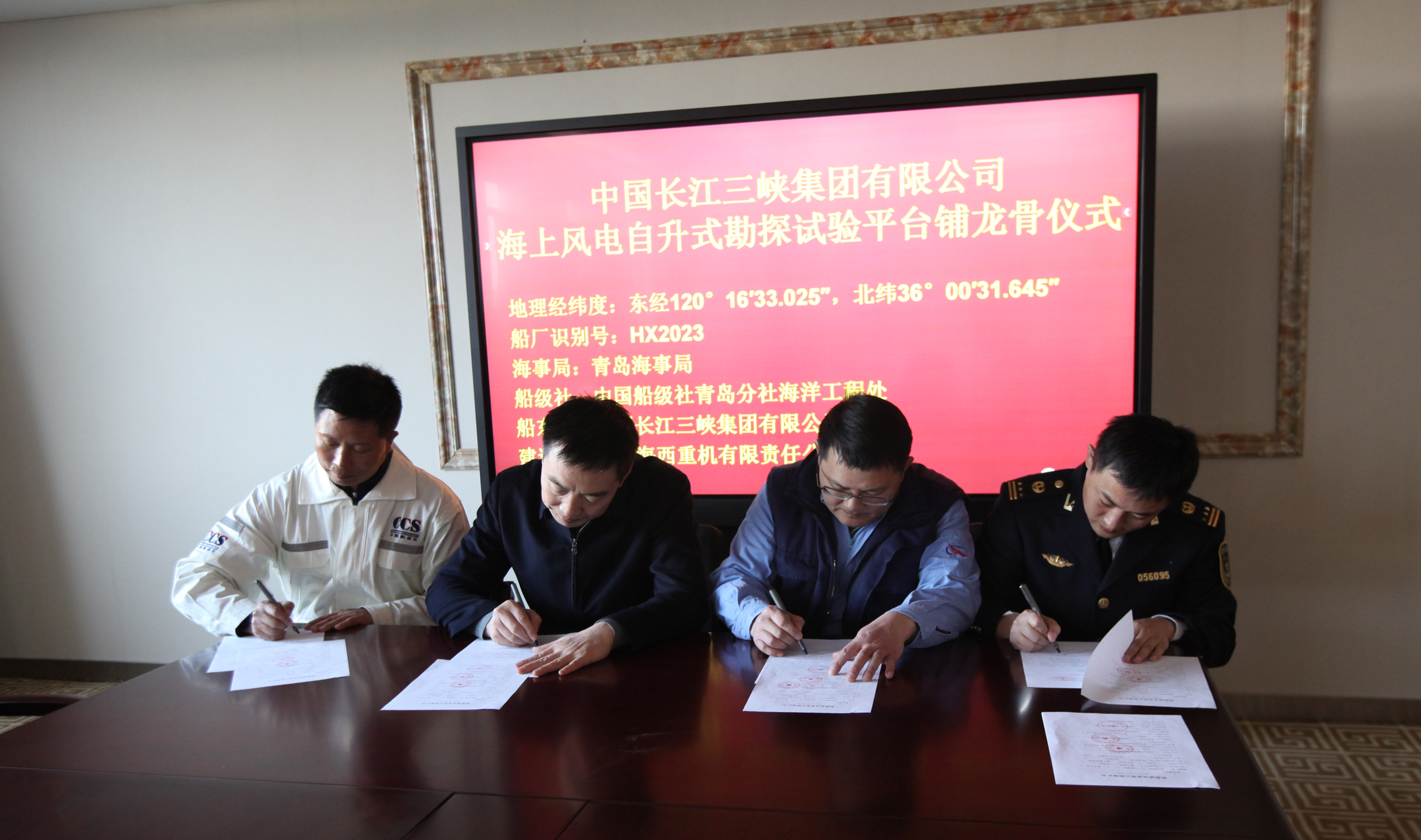12月22日上午,在青島海事局、中國船級社青島分社、中國長江三峽集團有限公司、中國船舶集團旗下武漢船機海西重機各方代表共同見證下,“中國三峽101”海上風(fēng)電自升式勘探試驗平臺順利完成鋪龍骨儀式,標志著該項目正式進入平臺搭載建造階段。