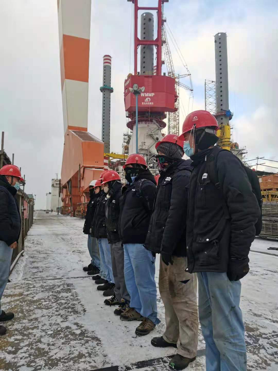 1月7日,山東經(jīng)歷了一次罕見的寒潮,煙臺下起了雪,這是第二場雪,也是我們要克服的又一個惡劣天氣,寒風(fēng)里摻雜著雪,氣溫也是零下好幾度。一如既往的早班會,特意強(qiáng)調(diào)一下安全,然后根據(jù)現(xiàn)場情況,交代好工作,我們就整裝上陣,開始一天工作?,F(xiàn)場的問題在一個一個解決,堅定了我們的信心。我常常鼓勵大家,“咱們再辛苦辛苦,早日結(jié)束?!标犛褌円矔唵位匾痪渑牡脑?,“這都不是事,我們都想早點干完?!?/span>