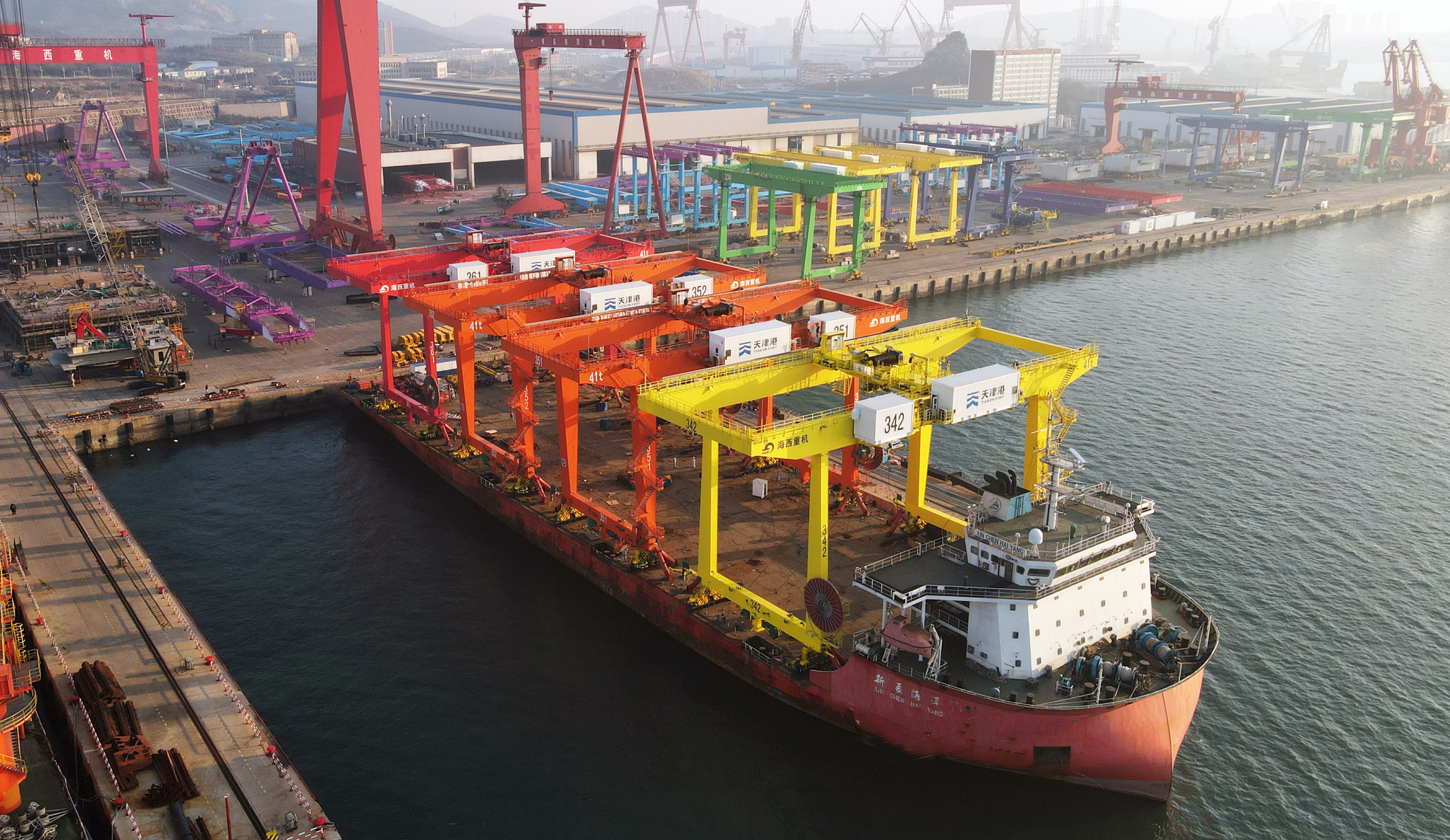2月19日,天津港北疆港區(qū)C段智能化集裝箱碼頭一期工程項目第三批4臺自動化軌道吊順利發(fā)運,中國船舶集團旗下武漢船機海西重機公司完成了新春首發(fā)。