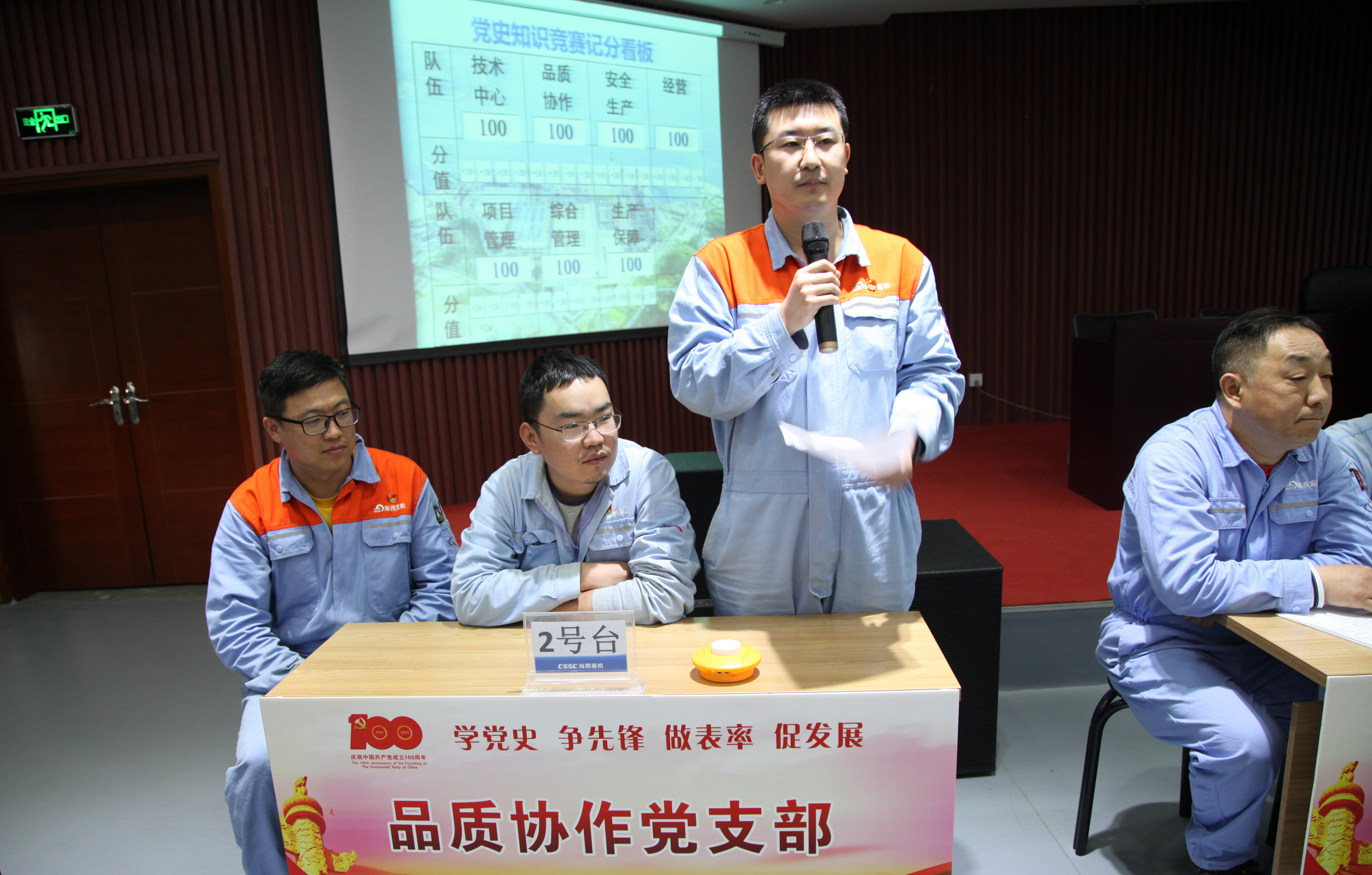 聚力同心齊奮進,學史激發(fā)新作為。為慶祝中國共產(chǎn)黨成立 100 周年,謳歌中華民族實現(xiàn)偉大復興的奮斗歷程,繼承革命先烈的優(yōu)良傳統(tǒng),傳承紅色基因,增進全體黨員干部對黨的知識的了解,5月20日,由中國船舶集團旗下武漢船機海西重機黨委主辦,公司團委協(xié)辦,以“學黨史 爭先鋒 做表率 促發(fā)展”為主題的黨史知識競賽火熱舉行,取得圓滿成功。
