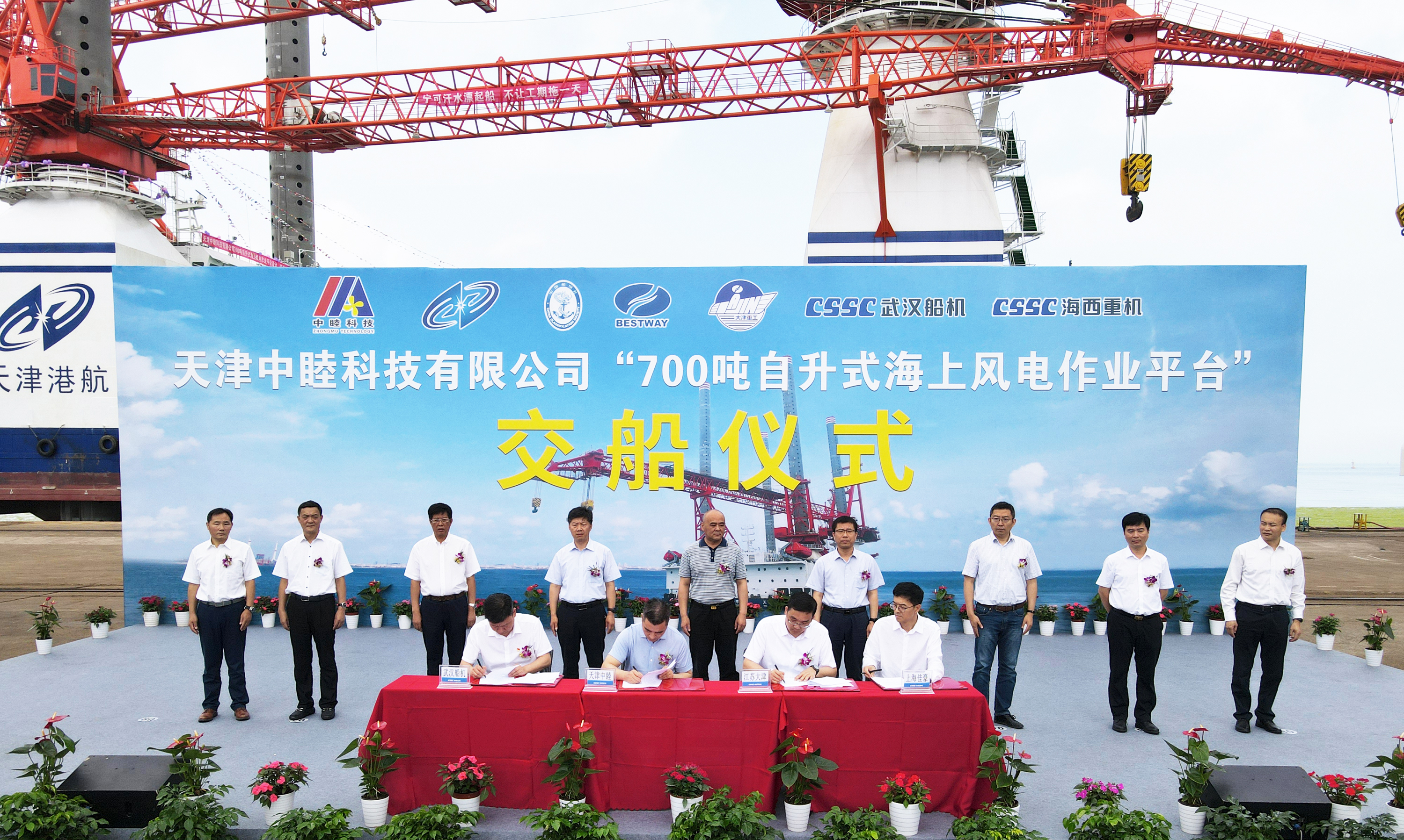 6月28日上午,天津中睦科技有限公司700T自升式海上風(fēng)電作業(yè)平臺——“港航平7”在中國船舶集團旗下武漢船機海西重機順利交付。
