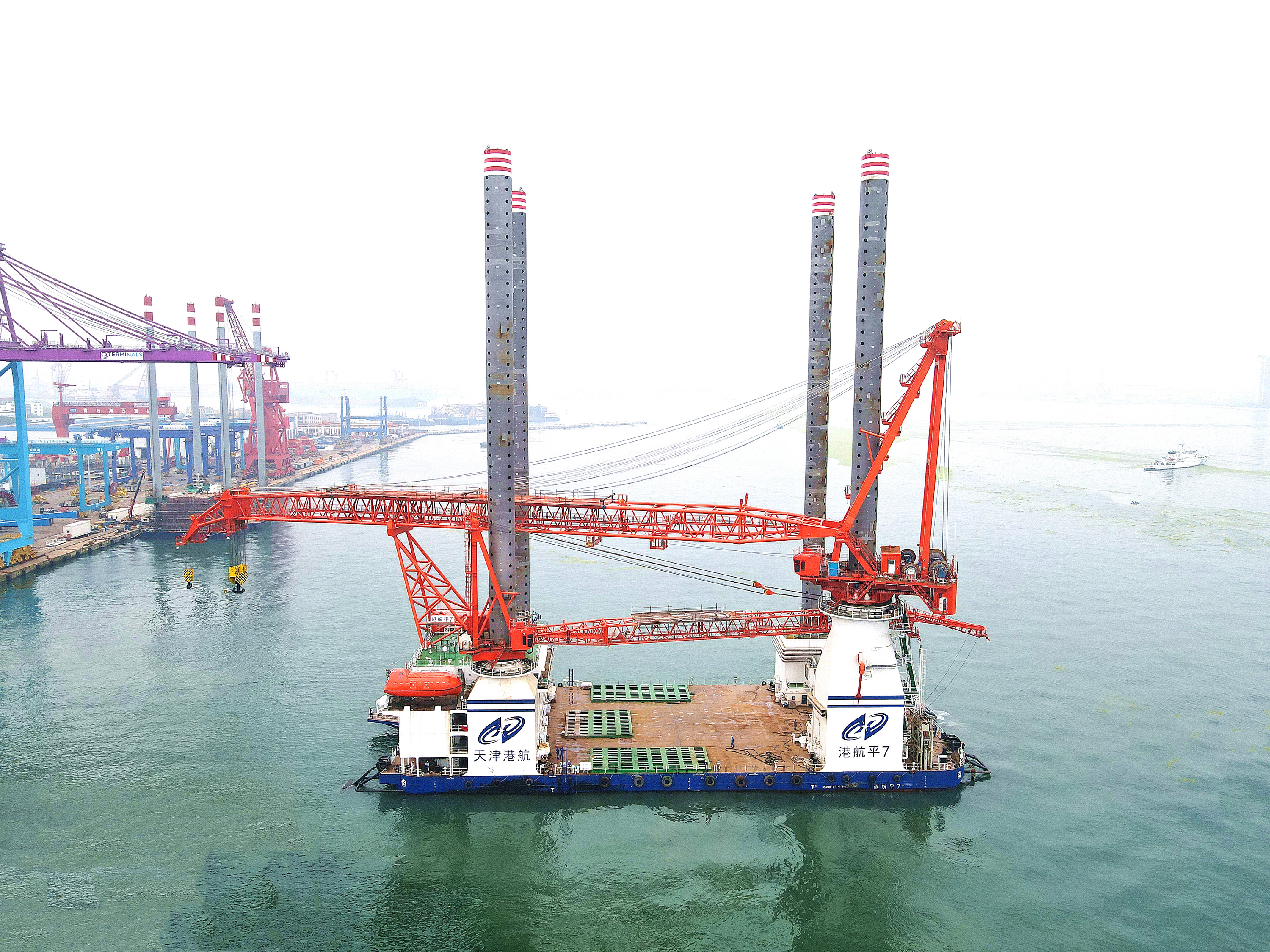“港航平7”正式服役后,可與1200T全回轉(zhuǎn)自升式海上平臺——“港航平9”、5000噸風(fēng)電工藝駁船——“港航駁5”、世界最大打擊能量MHU3500S液壓沖擊錘等船機設(shè)備構(gòu)建更加完備的風(fēng)電施工專業(yè)設(shè)備體系,將有效緩解海上風(fēng)電施工設(shè)備緊張壓力,提升海上風(fēng)電規(guī)模化作業(yè)能力,對貫徹落實黨中央、國務(wù)院關(guān)于碳達峰、碳中和重大決策部署,確?!笆奈濉遍_好局、起好步,促進國家綠色能源的發(fā)展貢獻力量。