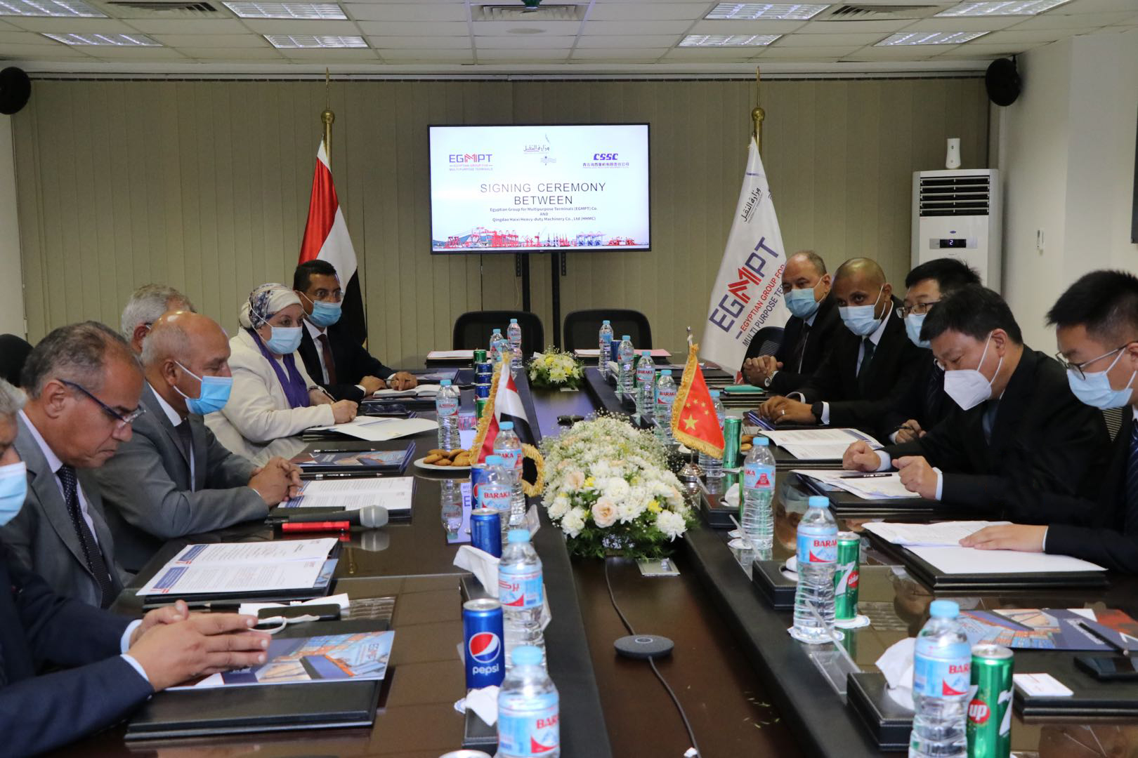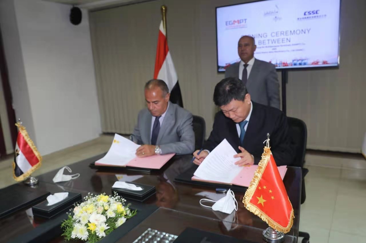當?shù)貢r間8月7日,中國船舶集團旗下武漢船機海西重機公司與埃及亞歷山大港多用途碼頭簽訂批量岸橋項目。埃及交通部部長Kamel Elwazir、多用途碼頭(EGMPT)主席Abdelkader Darwish、達飛集團駐埃及負責人Eng.Tariq Zaghloul及EGMPT技術(shù)團隊,海西重機黨委書記、董事長鄧振山等出席現(xiàn)場簽約儀式。