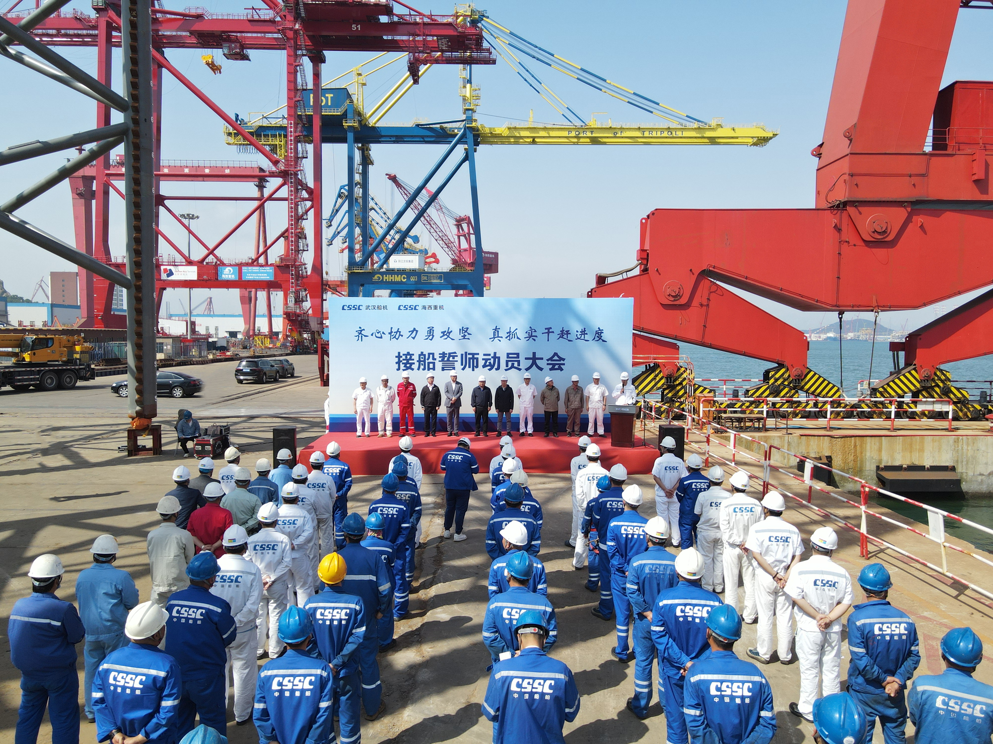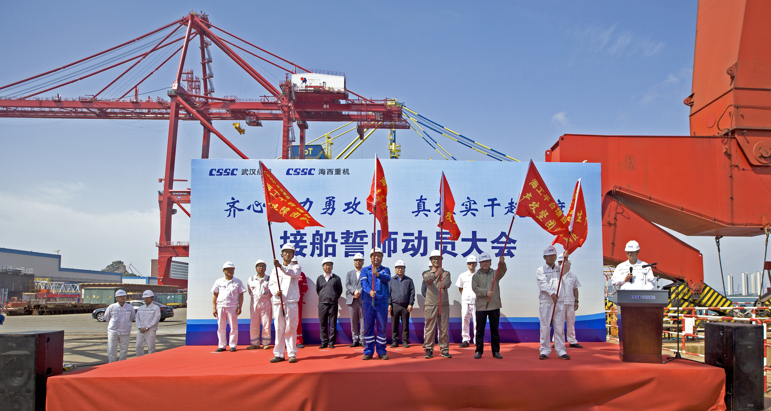 為了明確目標(biāo)、凝聚共識(shí)、齊心協(xié)力、克難攻堅(jiān),亮明迎難而上的堅(jiān)定信心和堅(jiān)強(qiáng)決心,動(dòng)員全員上下持續(xù)營造濃厚干事氛圍,掀起“齊心協(xié)力勇攻堅(jiān),真抓實(shí)干趕進(jìn)度”的高潮,全力以赴打好海工項(xiàng)目集中攻堅(jiān)戰(zhàn),5月25日上午,中國船舶集團(tuán)旗下武漢船機(jī)海西重機(jī)公司在生產(chǎn)現(xiàn)場(chǎng)組織開展接船誓師動(dòng)員大會(huì)。華夏金融租賃有限公司、北京神大集團(tuán)有限公司、飛勵(lì)特船舶管理有限公司、大津重工泰州分公司、江陰雙馬重工裝備有限公司、武漢船機(jī)海西重機(jī)等相關(guān)方參加本次動(dòng)員大會(huì)。