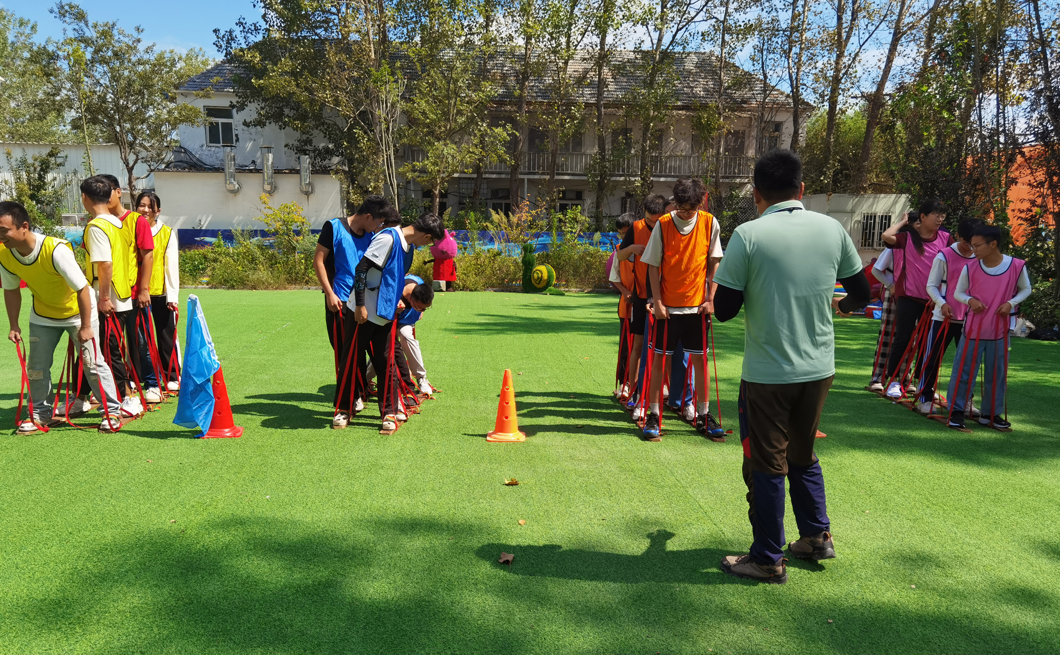秋風(fēng)送爽,秋意宜人。早上九點鐘,大家到達了嶗山王哥莊拓展基地,活動拉開帷幕。新員工們分成了“美團隊”、“餓了么隊”、“汪汪隊”、“芭比猛男隊”四支隊伍。選隊長、起隊名、喊隊訓(xùn),大家相互了解加深,團隊氛圍逐漸熱烈,為接下來的培訓(xùn)做好準(zhǔn)備。各種室外室內(nèi)拓展項目——“挑戰(zhàn)團隊極限”、“有軌電車”、“急速60秒”、“旱地冰壺挑戰(zhàn)賽”、“團隊金字塔”,用豐富多彩的趣味游戲寓教于樂,幫助學(xué)員體會團隊合作的重要性。