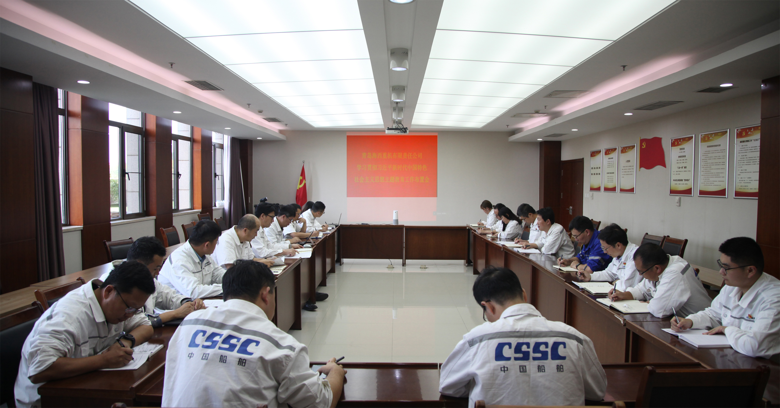 10月11日,中國船舶集團(tuán)旗下武漢船機(jī)海西重機(jī)公司黨委召開學(xué)習(xí)貫徹習(xí)近平新時(shí)代中國特色社會主義思想主題教育工作布置會。公司黨委書記、董事長李儒新作工作安排布置,公司黨委副書記、紀(jì)委書記朱聲凱對主題教育實(shí)施方案作解讀,公司黨委副書記、總經(jīng)理蔣新標(biāo),黨委委員、副總經(jīng)理代振華、謝宛朋出席會議。