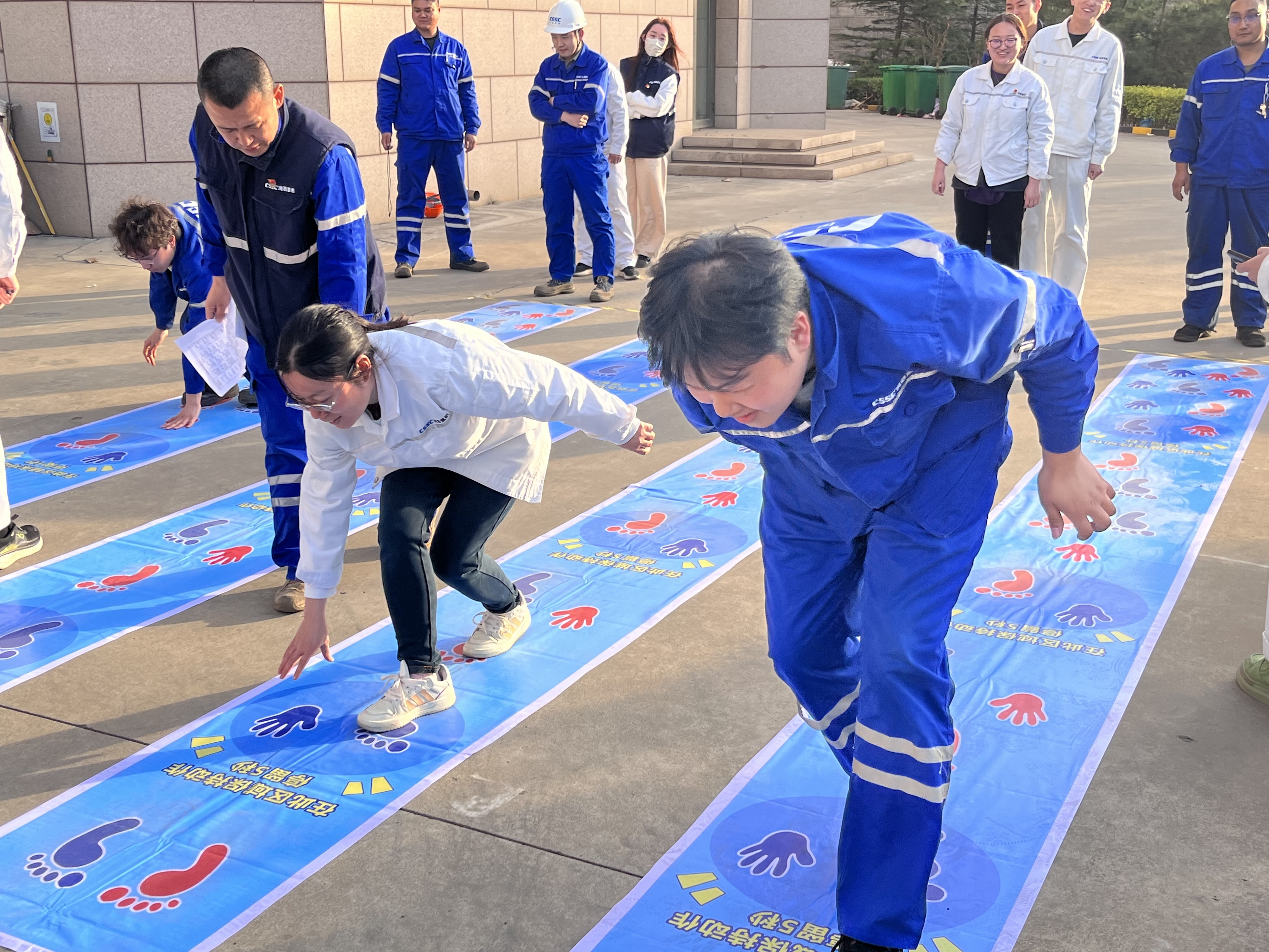 備受矚目的“巨人腳步”項目中,港口機(jī)械工程所的隊伍以口號統(tǒng)一步伐,如“鋼鐵巨人”般穩(wěn)步?jīng)_向終點,展現(xiàn)了驚人的默契?!凹w跳長繩”更是高潮迭起,跳繩隊員的靈活身姿與搖繩者的精準(zhǔn)節(jié)奏相得益彰,最后品質(zhì)管理部以3分鐘完成102次的佳績摘得單項冠軍。技術(shù)中心分會的謝士嬌在“摸石過河”中表現(xiàn)搶眼,她巧妙鋪磚、輕盈跨步,為團(tuán)隊節(jié)省關(guān)鍵時間?!拔覀兣驴墒恰畱?zhàn)術(shù)擔(dān)當(dāng)’!”她賽后笑稱。