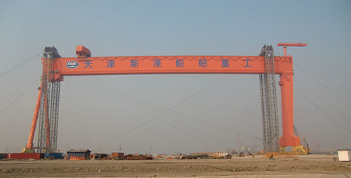 青島海西重機(jī)有限責(zé)任公司總承制的天津新港船舶重工有限責(zé)任公司臨港造修船基地首臺600噸×207米龍門吊,9月23日上午開始預(yù)提升,9月26日下午13點36分開始正式提升,于10月7日下午16點53分順利安裝到位,創(chuàng)下了國內(nèi)同類型龍門吊提升時間最短紀(jì)錄。