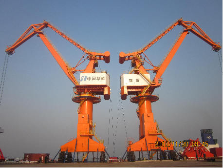 我司為中國(guó)華能董家口港制造的2臺(tái)MQ4040門(mén)座起重機(jī)順利滾裝上船