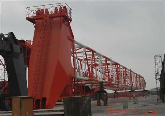科研43A是我公司為江蘇南通韓通船舶重工有限公司生產(chǎn)的250T-30m風(fēng)車安裝船用回轉(zhuǎn)起重機,整機重約為650T。這是我公司第一次生產(chǎn)海工產(chǎn)品,設(shè)計難度大,技術(shù)要求高,施工過程中出現(xiàn)問題多,而且工期要求緊。從一開始制作公司領(lǐng)導(dǎo)就極為重視,專門成立了以副總經(jīng)理為組長的生產(chǎn)小組,對生產(chǎn)中出現(xiàn)的問題盡量簡化程序,以最快的速度予以解決。目前,我公司負(fù)責(zé)生產(chǎn)的科研43A各部套結(jié)構(gòu)件已順利制作完成,通過業(yè)主驗收,已達(dá)到發(fā)運條件。