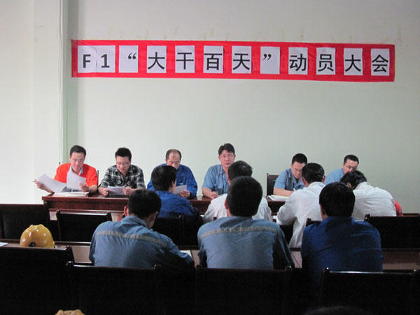 為確保公司重點(diǎn)產(chǎn)品3690噸浮吊(F1)項(xiàng)目結(jié)構(gòu)件制作的順利完成,生產(chǎn)黨支部與品質(zhì)黨支部聯(lián)合組織了F1項(xiàng)目“百日大干”勞動(dòng)競(jìng)賽。并于2012年6月29日召開(kāi)競(jìng)賽動(dòng)員大會(huì),詳細(xì)布置了競(jìng)賽活動(dòng)。