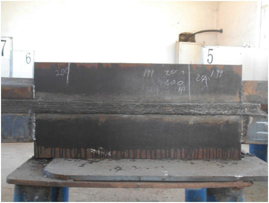 因齒條的鋼材材質(zhì)是經(jīng)過調(diào)質(zhì)處理的高強(qiáng)鋼,焊接工藝要求非常嚴(yán)格,每天清晨6點(diǎn)鐘就要開始預(yù)熱,經(jīng)過3小時(shí)的加熱、保溫才能施焊,一天焊完后晚上還要進(jìn)行3個(gè)小時(shí)的熱處理。經(jīng)過10多天的日夜奮戰(zhàn),厚114mm、長800mm的兩塊試板“一次焊接工藝評定”和“補(bǔ)焊工藝評定”均一次性順利通過,并得到了美國ABS船級社船檢師的高度贊揚(yáng)。此兩項(xiàng)工藝評定的順利通過,為F3項(xiàng)目后期最困難、要求也最高的齒條焊接奠定了堅(jiān)實(shí)的基礎(chǔ),鋪平了道路。