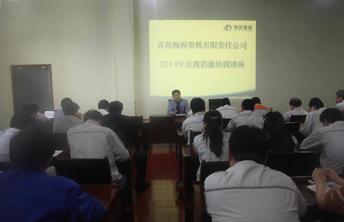 5月22日,海西重機(jī)邀請(qǐng)黃島區(qū)人民檢察院對(duì)口部門,在海西重機(jī)舉辦了2014年反腐倡廉培訓(xùn)講座,公司黨委書記孫總參加了培訓(xùn)講座。
