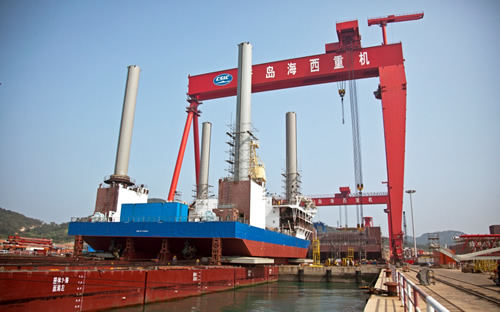 近日,海西重機(jī)自主研發(fā)設(shè)計(jì)的下水平臺(tái)在公司碼頭初次亮相,并助力90米(F5)海工平臺(tái)順利下水。這是公司首次利用新型輔助設(shè)備——下水平臺(tái)成功實(shí)現(xiàn)海工平臺(tái)下水。